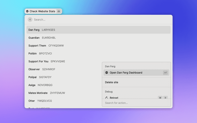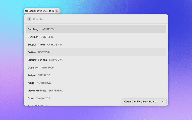 Gain quick insights into your Fathom Analytics sites, check stats and open a browser directly to the dashboard or site.