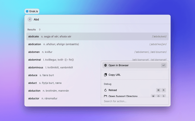 Search the Ensk.is English-to-Icelandic dictionary.
